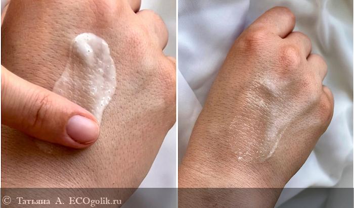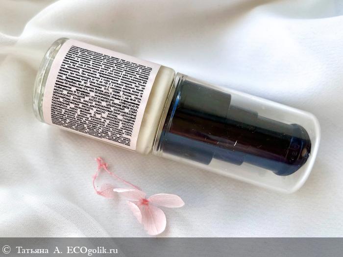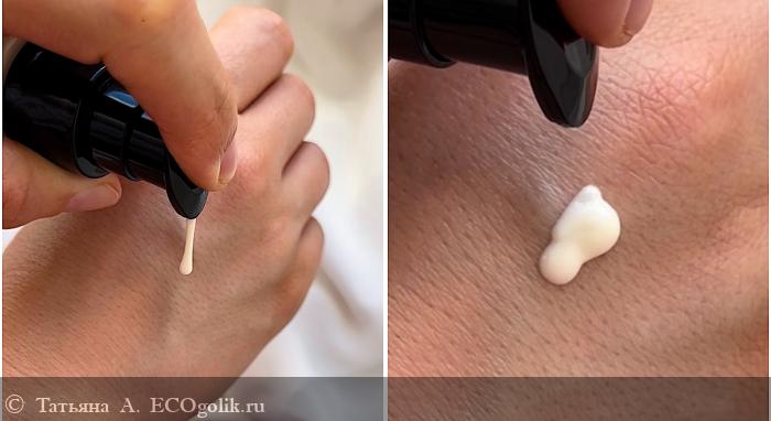 По текстуре средство представляет собой классический флюид. Очень лёгкий, текучий, совершенно не перегружающий кожу. Узкое отверстие дозатора позволяет извлекать средство буквально по капельке, что обеспечивает его экономичный расход.