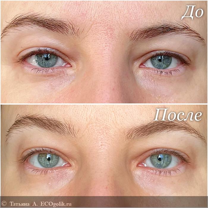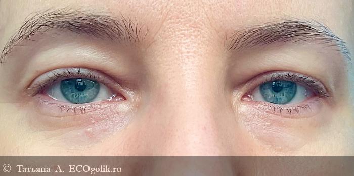 Мои надежды он оправдал на все 100%. Нежная кожа вокруг глаз стала более гладкой и напитанной, за счёт чего разгладились мелкие морщинки под глазами. Тон кожи стал ровнее и значительно уменьшились припухлости. И в целом взгляд стал более распахнутым и свежим, будто после отпуска. Хотя я по-прежнему достаточно много времени провожу за гаджетами и далеко не всегда высыпаюсь.
