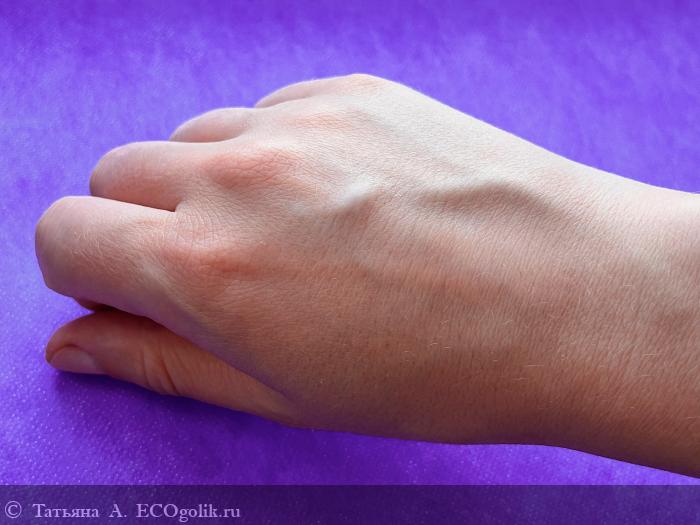Кожа рук после мытья чувствует себя комфортно: нет неприятного ощущения сухости и стянутости, которое часто меня сопровождало при использовании твёрдого мыла. На фото её состояние без применения крема уже на протяжении нескольких дней. Дополнительное увлажнение, по крайней мере сейчас, в летний сезон, коже рук не требуется.