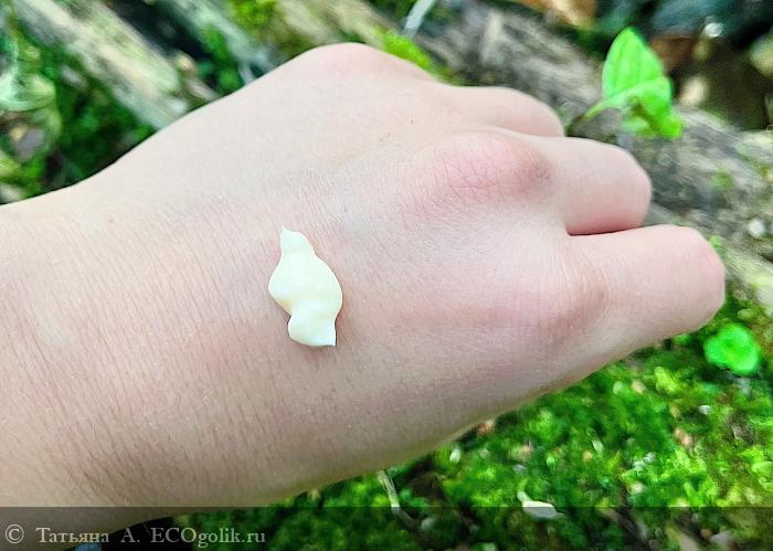 Консистенция очень интересная: плотная, но в то же время лёгкая. Не растекается на руке, уверенно держит форму.