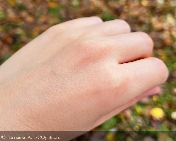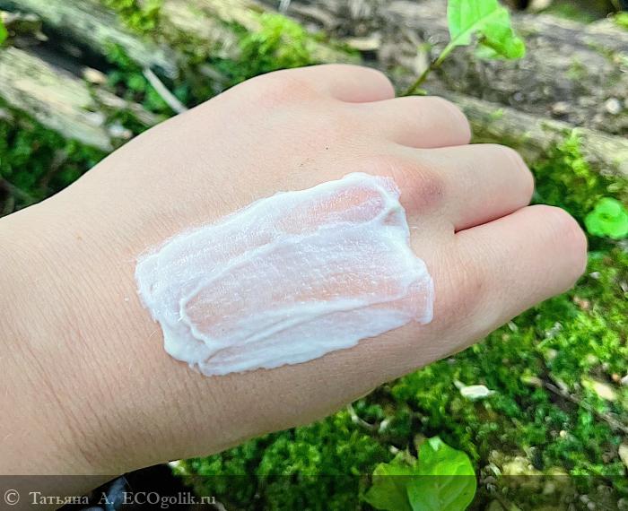 Название «крем-молочко» очень точно отражает текстуру средства: крем подчёркивает питательность, а молочко — способность средства таять на коже, ощущение невесомости. Сразу же после нанесения чувствуется небольшая липкость, но она не раздражает и очень быстро исчезает. Не прошло и минуты, а крем-молочко уже полностью впиталось, качественно увлажнив кожу рук.