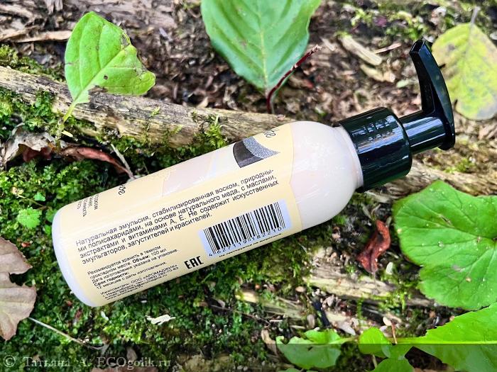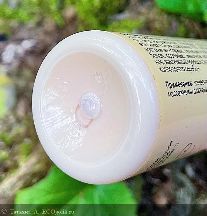 Натуральная эмульсия, стабилизированная воском, с натуральным медом, прополисом, маточным молочком и жемчужным порошком, обогащенная СО2 экстрактами, эфирными маслами, натуральными компонентами, оказывает антисептическое, защитное, регенерирующее, питательное и увлажняющее действие.