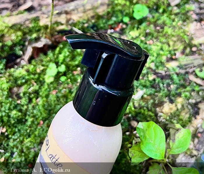 Вся необходимая информация о средстве указана сбоку и сзади, не перегружая лицевую часть этикетки, чтобы мы могли через прозрачные фрагменты сразу увидеть, какой приятный цвет имеет крем-молочко.