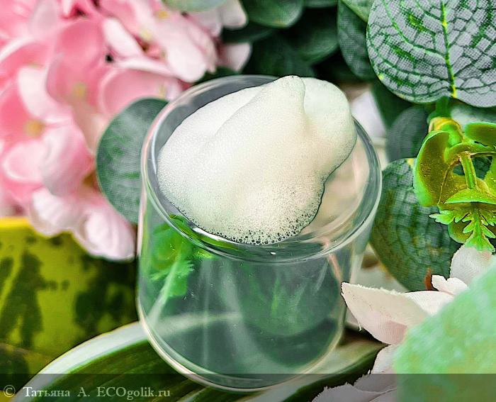 Воздушное облачко отличается стойкостью и не торопится оседать. Для проведения гигиенических процедур, конечно, требуется не так много времени, но я заметила, что более плотные пенки максимально приятны для кожи.