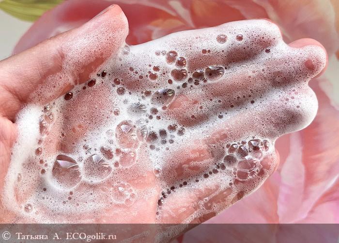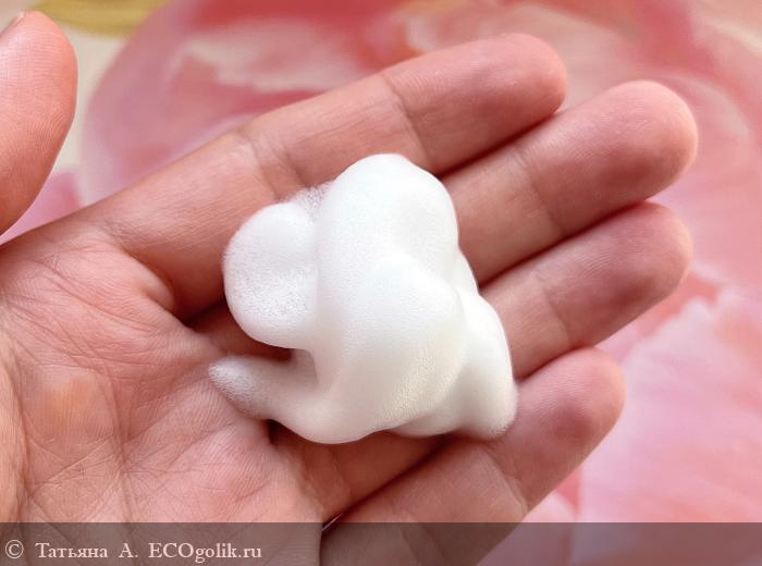 Мусс легко распределяется по коже, образуя невероятно приятную сливочную пенку. Она обволакивает своей заботой и нежностью, превращая процесс очищения в удовольствие.