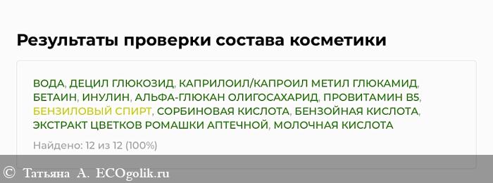 Как и указано на этикетке, сервис проверки Экоголик состав одобрил, оценив практически все компоненты высшим баллом.