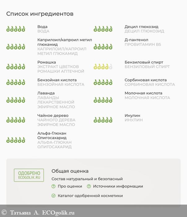 Мусс имеет отличный состав, одобренный сайтом Экоголик.