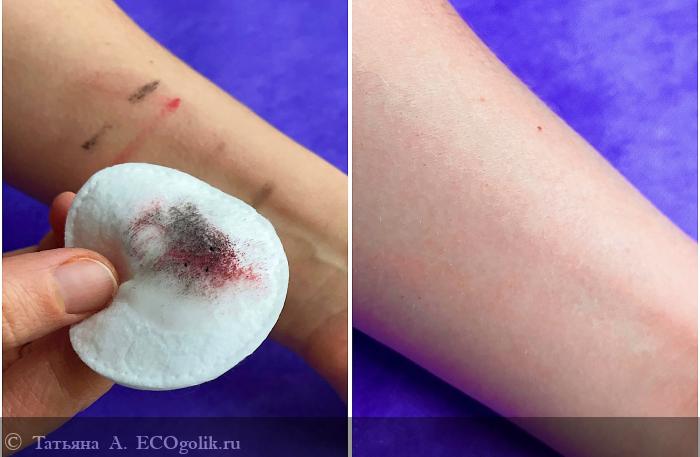 Потребовалось несколько раз провести ватным диском по коже, чтобы от косметики не осталось и следа. Думаю, если использовать декоративные средства из натурального сегмента, то усилия с гелем-муссом будут и вовсе минимальными.