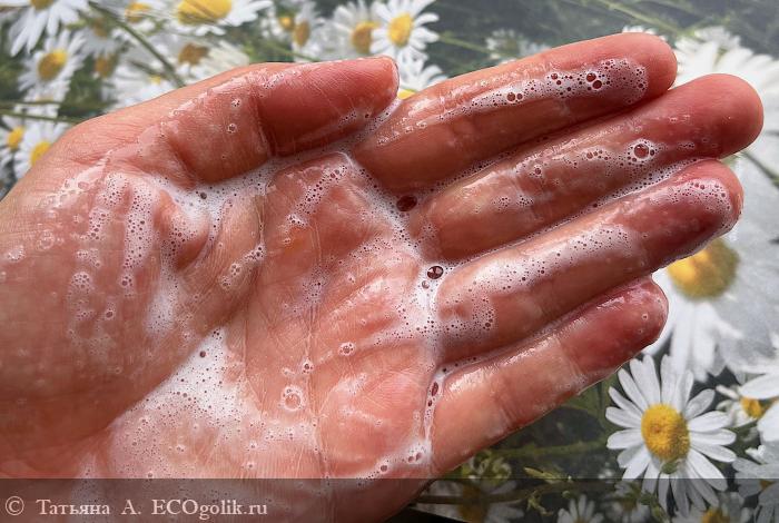 И отдельное удовольствие — аромат средства! Он для меня очень гармоничный! Я ощущаю ромашку, но не приторную аптечную, а нежную, трепетную, с идеальным балансом свежести и сладости. Такой аромат никогда не надоест.
