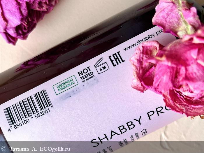 Shabby Pro — веганский российский бренд, который проявляет этичность по отношению к животным и не тестирует свои продукты на них. В составах средств производителя содержатся ингредиенты только растительного происхождения. Неудивительно, что на флаконе с кремом красуется одобрительный штамп нашего сайта Экоголик.