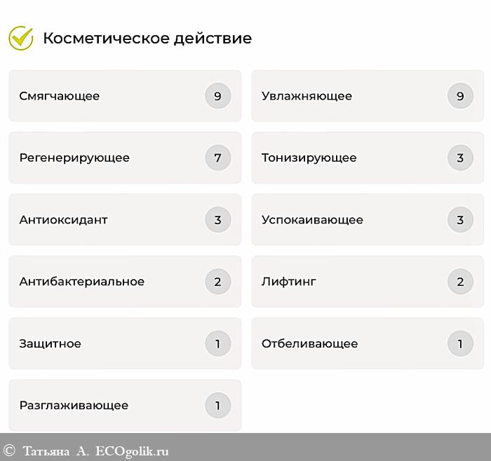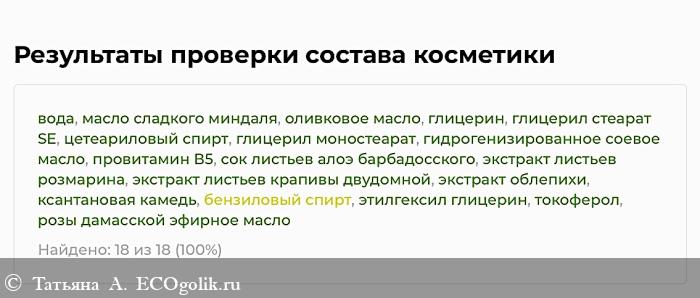 Расширенная проверка состава показывает внушительное количество ингредиентов, направленных прежде всего на смягчение, увлажнение и регенерацию кожи, о чём и заявляет производитель.