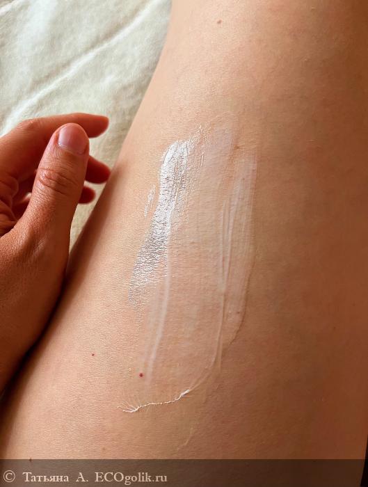 Средство немного полосит, но это не затрудняет его впитывание. Просто особенность плотной текстуры.