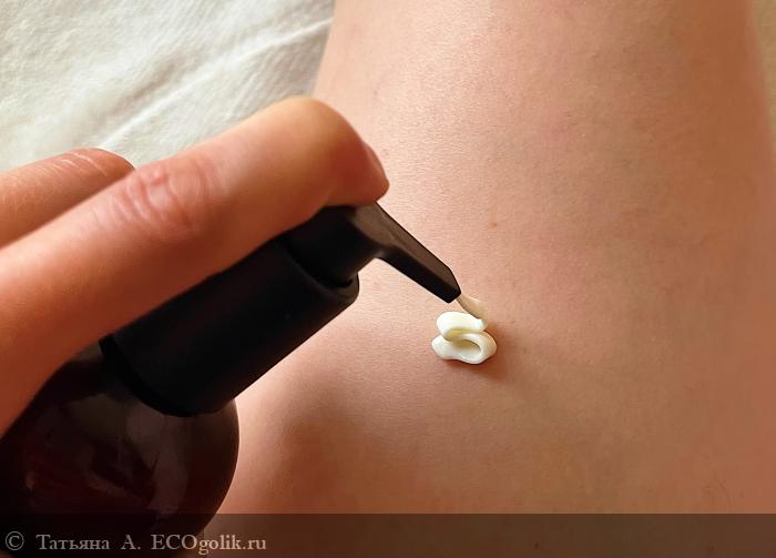 Флакон оснащён качественным помповым дозатором, обеспечивающим комфортное использование продукта. Он работает в единственном режиме OPEN, но при планировании поездки его можно зафиксировать пластиковым ободком, и средство не выйдет наружу. Для домашнего использования дозатор удобен — никаких лишних движений: нажал и получил желанную порцию крема.