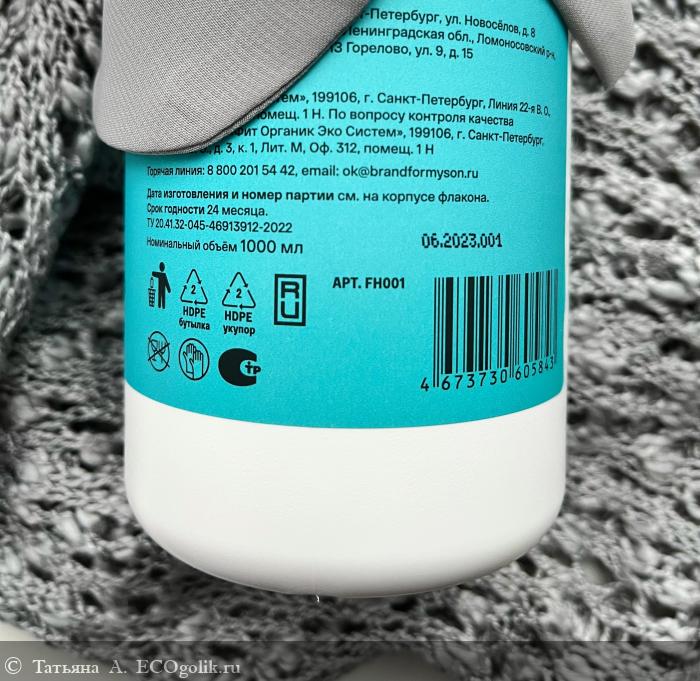 Увесистая литровая бутыль сделана из качественного пластика 2HDPE. Срок годности составляет 24 месяца, начиная от даты, указанной над штрихкодом.