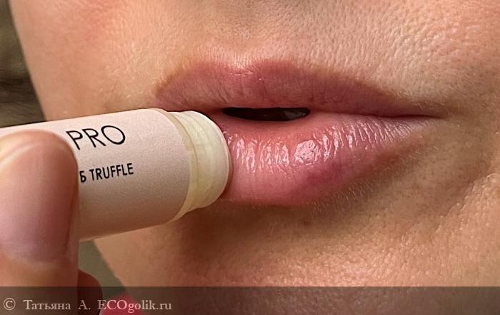 Особенно порадовал меня накопительный эффект от использования бальзама. Я заметила его уже после нескольких дней применения. Большая часть моих прежних бальзамов давала ощущение увлажнённости лишь на небольшой промежуток времени, пока средства присутствовали на губах. После перекуса или просто по истечении нескольких часов кожа уже требовала повторного нанесения. Но с бальзамом «Трюфель» ситуация иная: я про него порой просто забываю даже после перекуса, и губы не становятся сухими. Но мне так нравится его аромат, что это происходит достаточно редко.