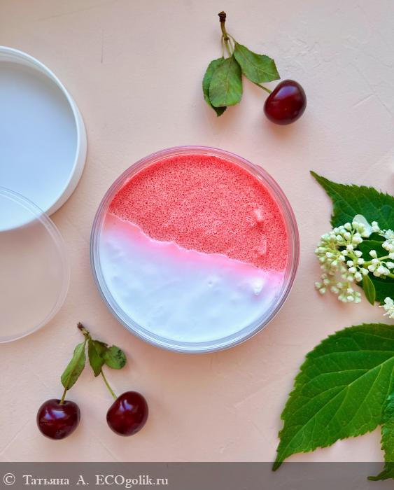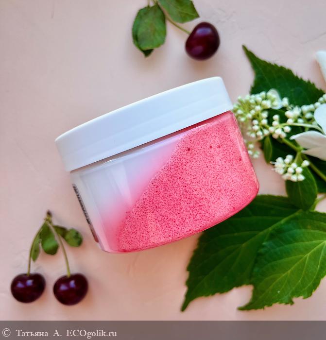 Не так часто в сегменте натуральной косметики встречаются средства с вишней, а я очень люблю её такой манящий и насыщенный вкус, поэтому когда увидела это великолепие, поспешила его заполучить в свои руки.