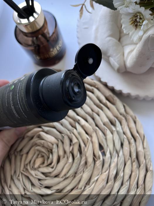 Внешний вид: пластиковый, черный, матовый флакон, с крышкой флип-топ.