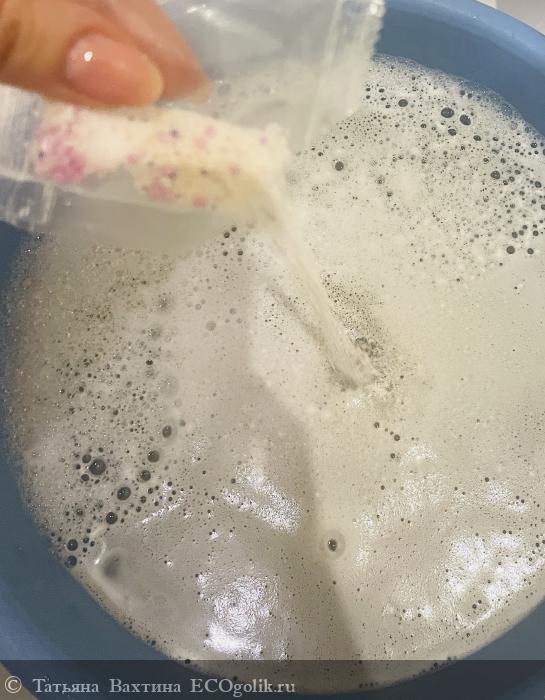 В таз налила, примерно, 5 литров воды, затем, добавила 1 пакетик усилителя Booster.