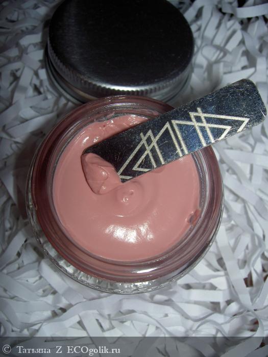 В упаковке вместе с самой баночкой со средством находится еще и косметический металлический шпатель с тем же геометрическим рисунком в виде треугольничков, что и на упаковке. Шпатель предназначен для более удобного и при этом гигиеничного нанесения средства.