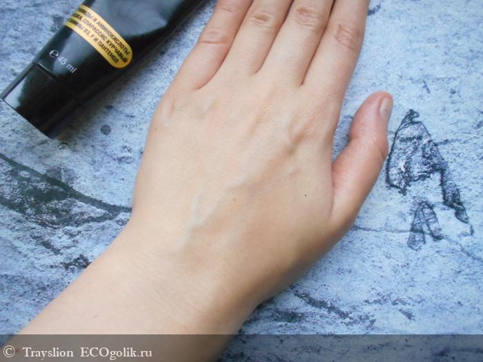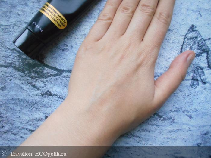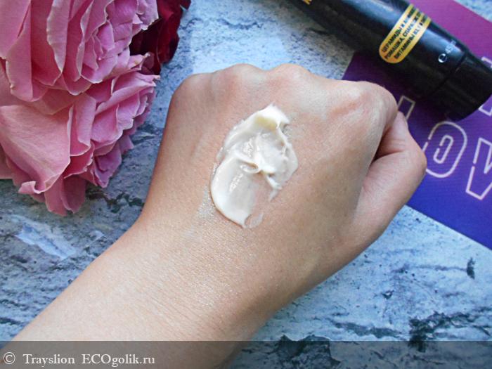 Крем оставляет после себя маслянистость, но впитывается в течение нескольких минут. При этом нет ощущения, что кожа перегружена. Если же нанести крем с избытком, он может потребовать больше времени на втирание.