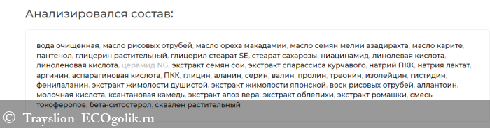 Один компонент сервис не распознал. Ceramide NG – это чистый церамид, идентичный натуральному, предназначенный заменить натуральные церамиды кожи и волос. Таким образом, состав крема является натуральным.
