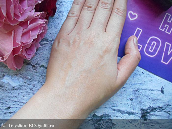 Крем легко распределяется по коже рук. Липкости после нанесения нет. На втирание уходит не более минуты. Важно - наношу его только на сухую кожу.