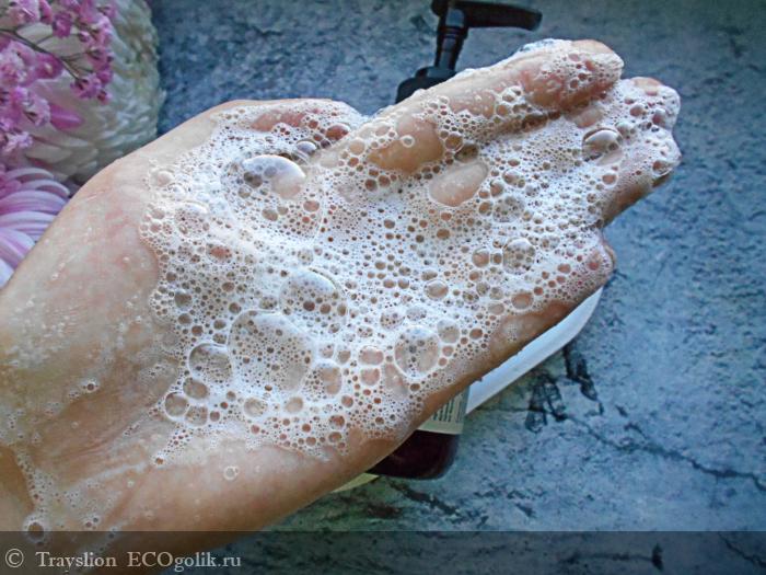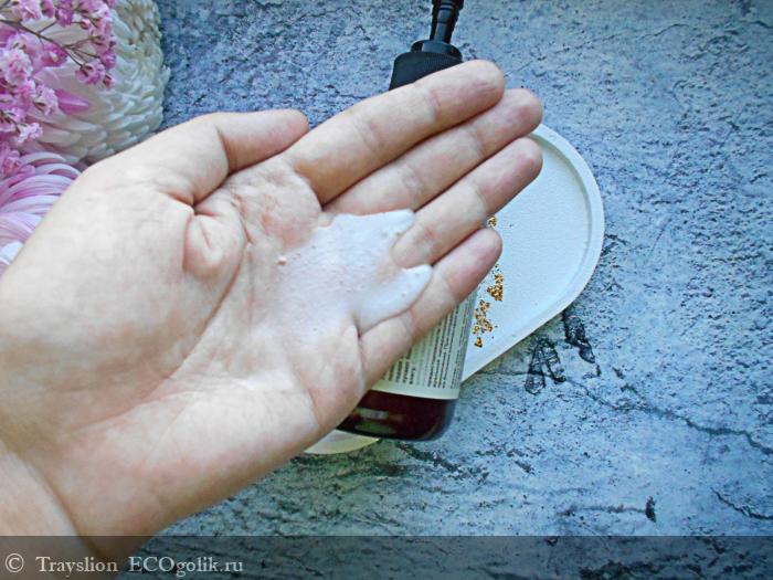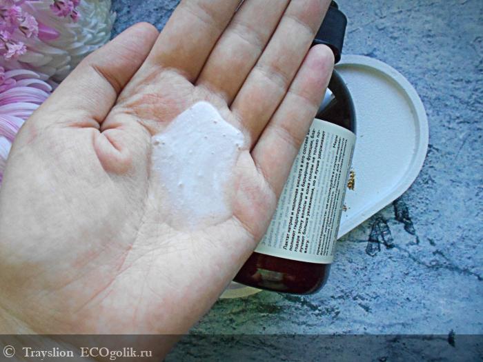 Шампунь хорошо пенится, образуя мягкую и густую пену. Она отлично промывает корни волос, даже если они были очень жирными. При смывании шампунь не оставляет на волосах налёта.