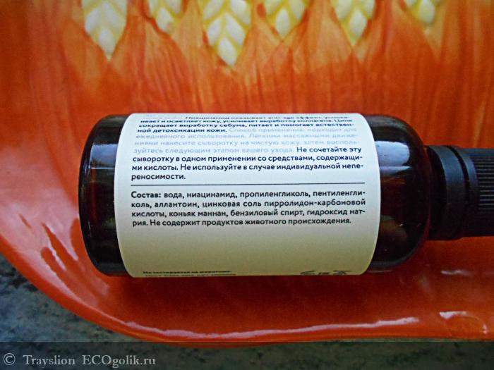 Сыворотка обладает умеренной липкостью. По коже распределяется легко, впитывается быстро. Липкость проходит примерно в течение нескольких минут. Несмотря на наличие ниацинамида в составе, средство не щиплет кожу и не провоцирует покраснения. После нанесения сыворотка не перегружает кожу и не стягивает её. Жирного финиша не наблюдается.
