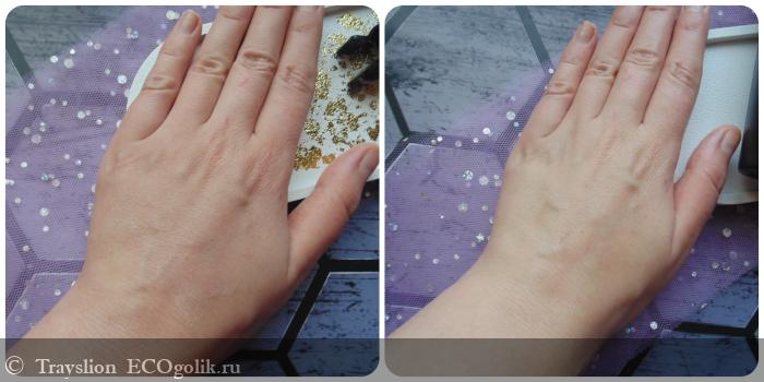 Финиш у крема не липкий, не жирный и не скользкий. Кожа выглядит почти матовой и ухоженной.