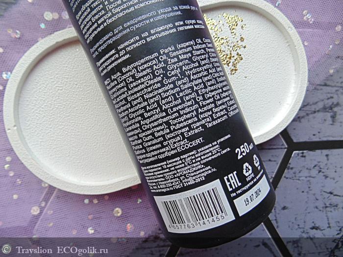 Крем наношу на кожу рук и тела. Текстура у него тающая, распределяется без проблем. Кроме того, не оставляет липкости, маслянистости, ощущается очень комфортно.