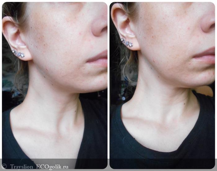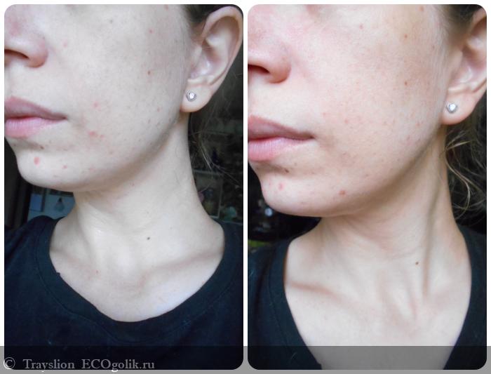 Сейчас я активно борюсь с покраснениями и следами пост-акне, которые у меня бывают довольно часто. Благодаря флюиду количество покраснений за эти несколько дней заметно сократилось, воспалений стало появляться меньше, да и пятна тоже уменьшились в размере. Отсюда могу сделать вывод, что при регулярном использовании флюид способен улучшить состояние проблемной кожи. Негативного воздействия не заметила.