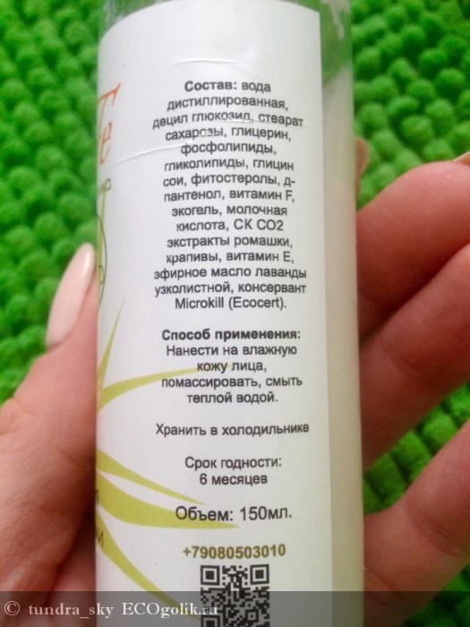 вода, децил глюкозид, стеарат сахарозы, глицерин, фосфолипиды, гликолипиды, глицин сои, фитостеролы, д-пантенол, витамин F, экогель, молочная кислота, СК CO2 экстракты ромашки, крапивы, витамин E, эфирное масло лаванды узколистной, консервант Mikrokill