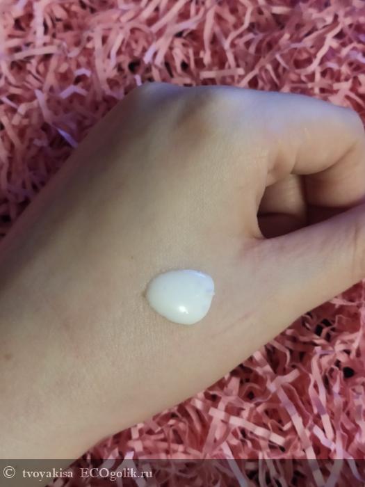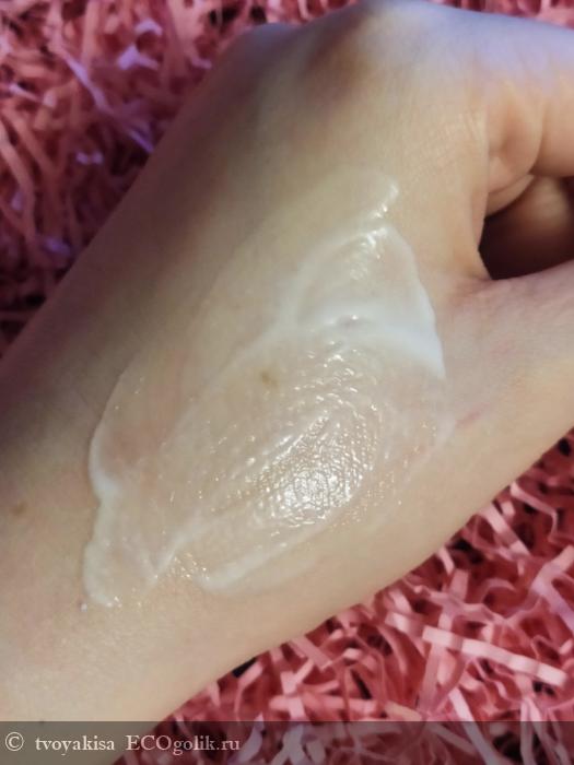 Описание текстуры полностью соответствует реальности. Текстуру можно описать как крем-гель или крем-мусс, что-то такое.Она легкая, она приятная, она быстровпитывающаяся и все с ней хорошо в плане текстуры. Впитывается продукт прекрасно, очень быстро и для полного впитывания хватает 1-2 минуток.
