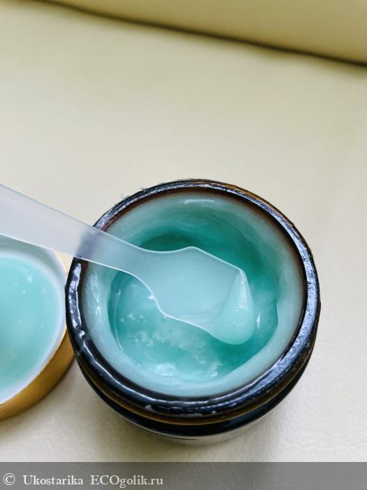 Описание : средство имеет приятную отдушку, мне аромат представился нотами морской свежести. Вообщем то и цвет у маски тоже морской , красивый бирюзовый оттенок. По консистенции могу сказать , что чуть вязкая и хорошей густоты, не растекается , а отлично ложится на лицо.