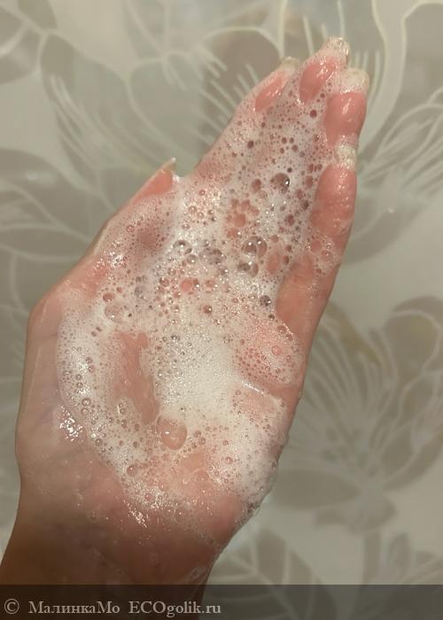 Пенка получается густая, пышная и объемная, пузырьки в пенке маленькие, долго держится пенка. Можно купаться с таким гелем-шампунем.