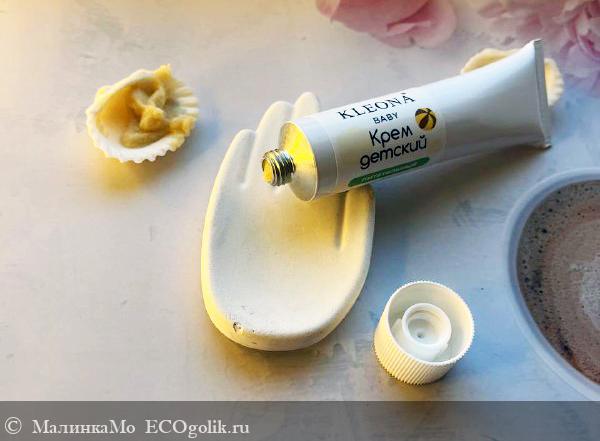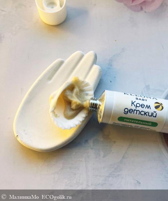Интересная консистенция у этого детского крема! И цвет тоже не более привычный, зато сразу видно что состав у крема абсолютно натуральный. Консистенция такая кремо-кашеобразная. Цвет бежево-песочный.