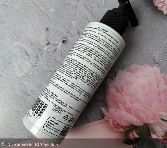 Очень много полезной информации про шампунь можно прочитать на этикетке и текст весь очень хорошо видно и отлично читается, не слишком мелкий и ни капельки не расплывчатый.