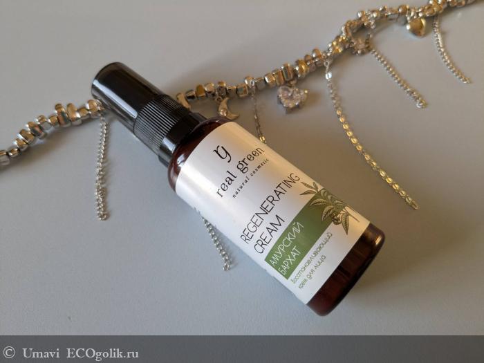 Восстанавливающий крем «Амурский бархат» REAL GREEN упакован в стильную баночку объёмом 50 мл. Упаковка выполнена в едином эко-стиле линейки с лаконичной и понятной этикеткой. Сам крем имеет плотноватую, но пластичную текстуру с тонким ароматом. При нанесении превращается в лёгкую эмульсию, которая идеально ложится на кожу.