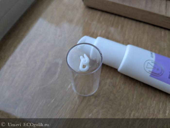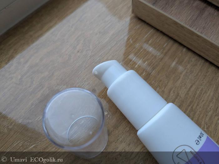 Упаковка выглядит стильно и минималистично, что мне нравится — никаких лишних ярких элементов, которые кричат "купите меня". Тюбик объемом 30 мл из белого матового пластика с фиолетовой этикеткой. Есть логотип с колбой и надписью "Natural + Organic Ingredients", что подчеркивает натуральность. Весь тюбик лежит в руке удобно, как небольшой флакончик. Сбоку — маркировка с сроком годности (6 месяцев после открытия) и символами переработки, включая "Not tested on animals". В общем, дизайн спокойный, вызывает доверие, но ничего сверхъестественного — просто аккуратный и функциональный.