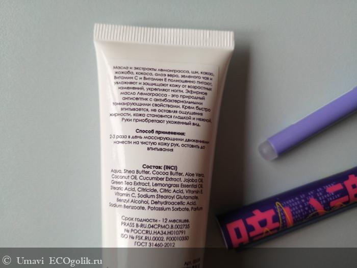 Крем имеет легкую текстуру, которая быстро впитывается и не оставляет жирной пленки на коже. Это очень важно для меня, так как я предпочитаю кремы, которые не оставляют неприятного ощущения на руках. После нанесения крема кожа становится увлажненной и приятной на ощупь. Он также обладает нежным ароматом, который не вызывает дискомфорта.