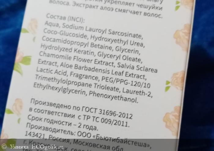 По составу это даже не просто моющая основа на основе растений (Sodium Lauroyl Sarcosinate, Coco-Glucoside, Cocamidopropyl Betaine). Также состав разработан с добавлением восстанавливающего кератина, а также растений - шалфея, ромашки, алое вера.