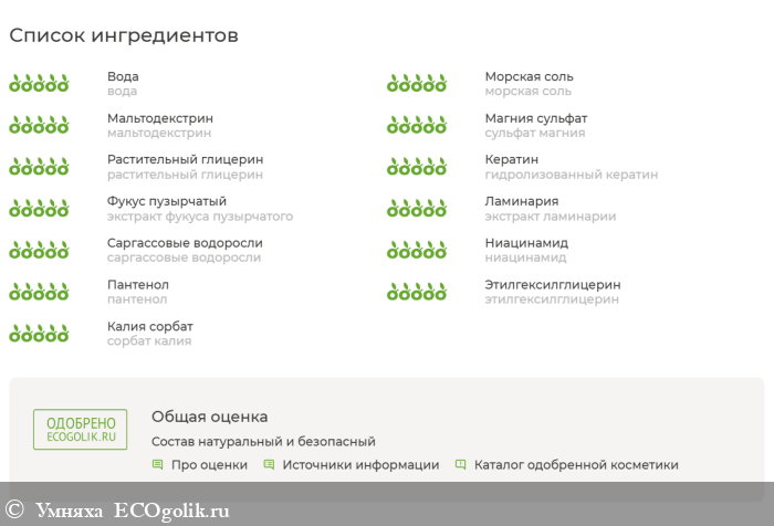 Другие же компоненты состава - это чистый уход. Посмотрите на скрин, как их здесь реально много! Одних только водорослей несколько видов. А ведь они прекрасно, как никакой другой компонент, увлажняют волосы, препятствуют ломкости и сухости.