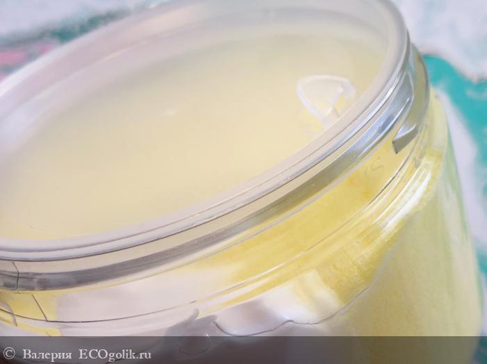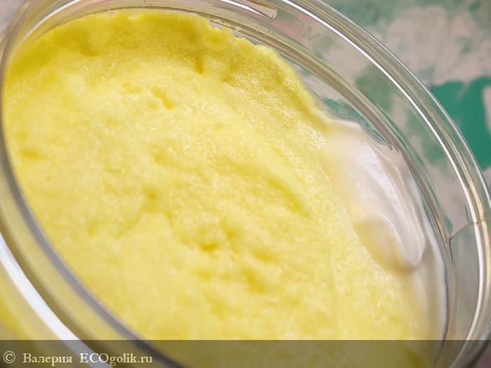 Привлекателен "Ананас" не только своим экзотическим экстрактом и ароматом, у средства также необычен и формат, который совмещает в себе две части - кремовую и скрабирующую: