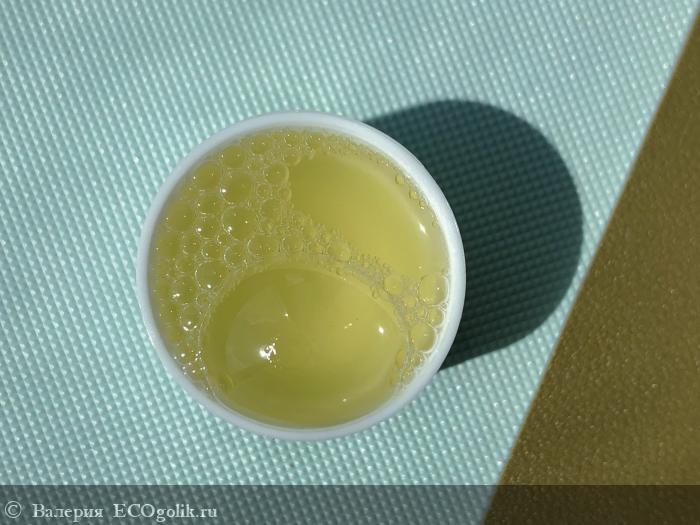 Консистенция средства - гелевая и текучая - обладает желтовато-оранжевым оттенком: