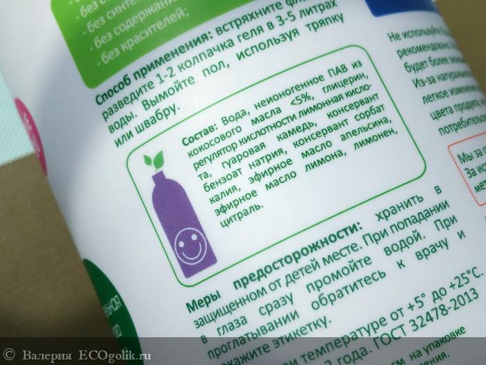 Формула геля для мытья пола - это растительный ПАВ и фруктовая кислота - и НИКАКИХ сульфатов, фосфатов и хлора!