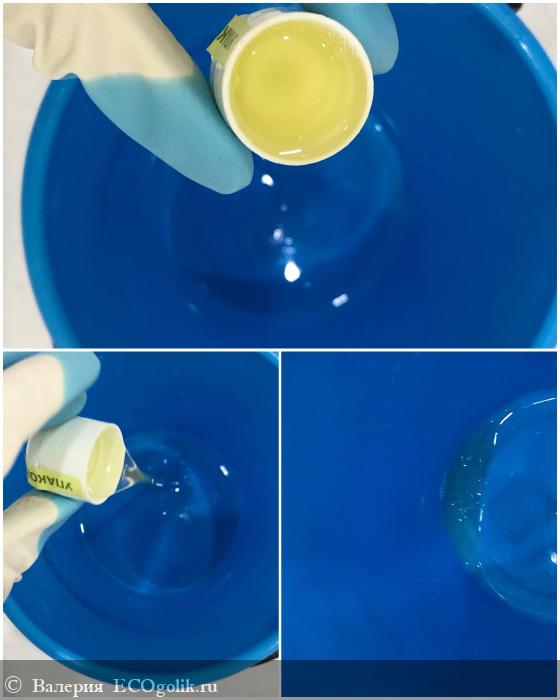 Чтобы перемыть пол во всей квартире достаточно добавить два! колпачка геля на среднее ведро (5 литров):