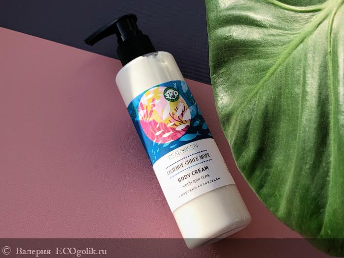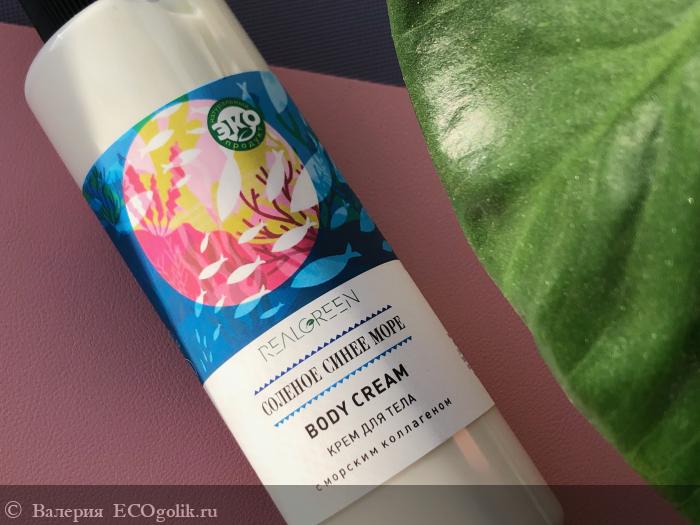 С приходом зимних морозов "снег" на ножках - сухость и шелушение - мой вечный спутник до конца отопительного сезона. Поэтому легкие флюидные эмульсии я откладываю до оттепели и беру в оборот "тяжелую артиллерию" - более плотные и питательные средства - например, омолаживающий крем для тела "Соленое синее море" с морским коллагеном от бренда REALGREEN: