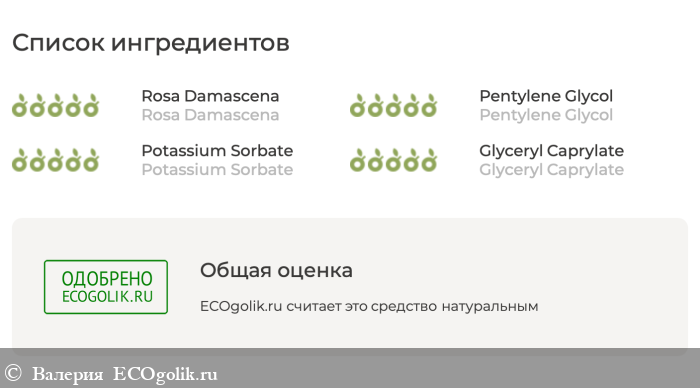 Сервис проверки на Экоголике распознал и одобрил все компоненты средства!