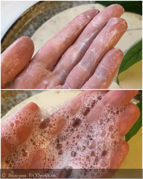 При соприкосновении с водой гель-масло выдает обильную и пушистую пену: