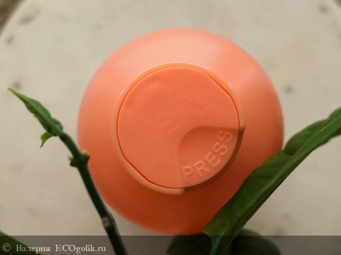 Вверху флакона нас встречает яркая и удобная крышечка диск-топ: